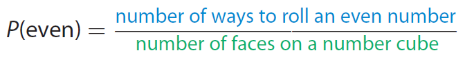 What is the probability of rolling an even number on a standard number cube ?