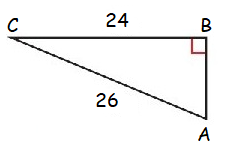 Given, Hypotenuse side AC = 26, Length1 BC = 24 and Length2 AB = ?