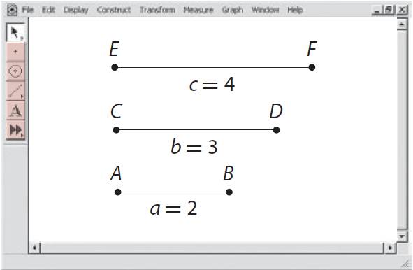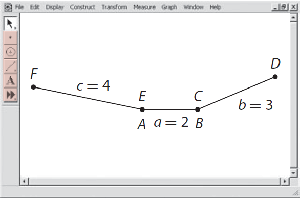Use geometry software to draw a triangle with sides of length 2, 3, and 6 units, and one with sides of length 2, 3, and 5 units. Do the line segments form triangles? How does the sum of the lengths of the two shorter sides of each triangle compare to the length of the third side ?