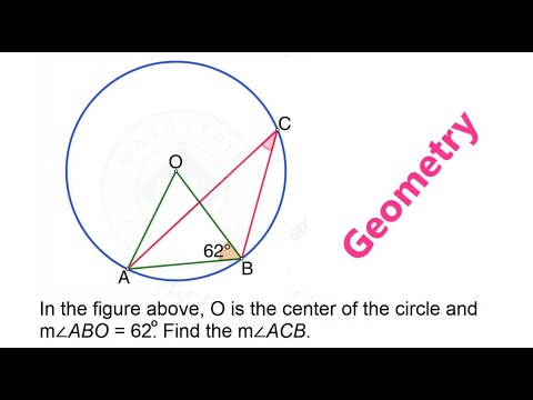 In the figure above, O is the center of the circle and m∠ABO = 62°. Find m∠ACB.