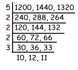 The quantity of coffee in three vessels are 1200 ml, 1440 ml and 1320 ml. Find the capacity of the largest cup that can measure the coffee in the vessels and exact number of times.