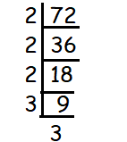72 = 2 ⋅ 2 ⋅ 2 ⋅ 3 ⋅ 3