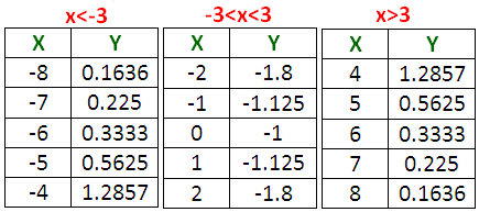 In the given rational function, now we have to plug some random values for 'x' and find the corresponding values of 'y'.
