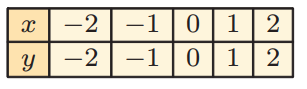 So, the points are (-2, -2) (-1, -1) (0, 0) (1, 1) and (2, 2).