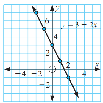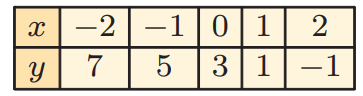 So, the points are (-2, 7) (-1, 5) (0, 3) (1, 1) and (2, -1). By plotting the points, we get