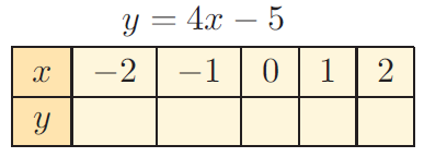 If x = -2 y = 4(-2)-5 y = -8-5 y = -13 |