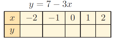 If x = -1 y = 7-3(-1) y = 7+3 y = 10 |
