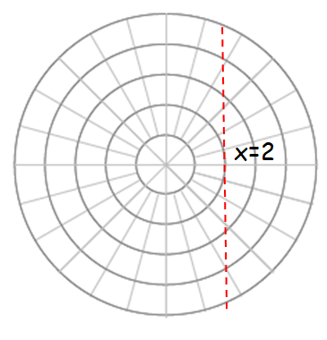 (a) r = 3 (b) θ = π/6 (c) r sinθ = 2 (d) r = sec θ