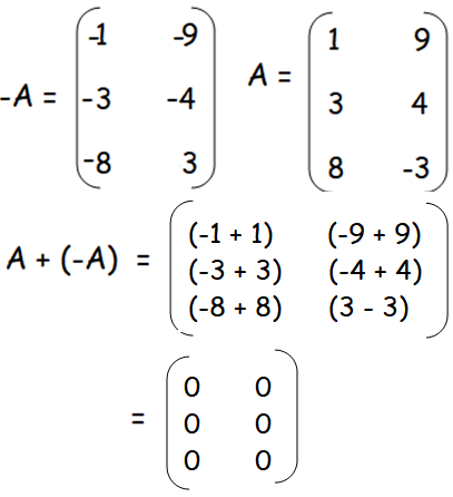 (i) A + B = B + A (ii) A + (−A) = (−A) + A = O.