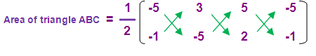Area of triangle ABC = (1/2) {(1 + 56 + 5) - (8 + 5 + 7)}
