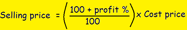 Selling price = [(100 + profit %) / 100] ⋅ Cost price