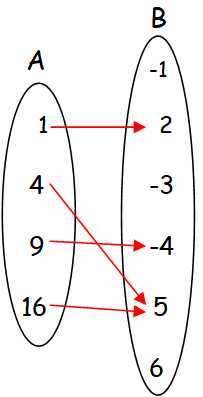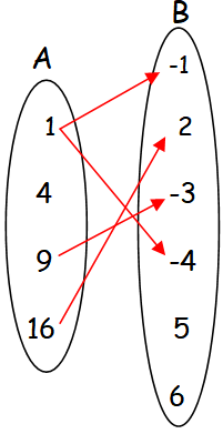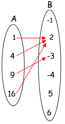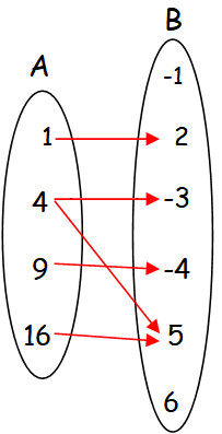 In the above arrow diagram, each element of A has image in B. But the element 4 in A has more than one image in B (two images -> -3 and 5).