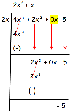 For example, the highest degree of the polynomial is 3, then the next term of the dividend must be the square term and so on. In this, if we don't have square term, we have to write 0 instead of that and we can write the next term.