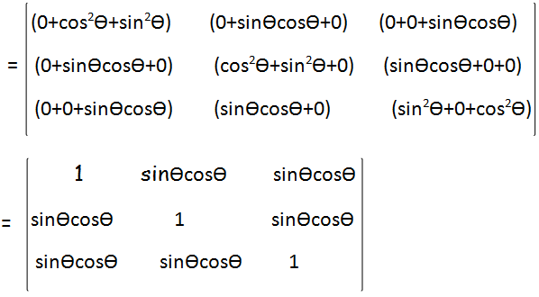 = 1(1 - sin2θcos2θ) - sinθcosθ(sinθcosθ-sin2θcos2θ) + sinθcosθ(sin2θcos2θ-sinθcosθ)
