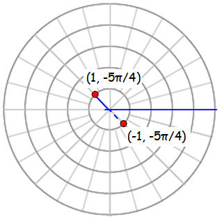 r = -5 < 0 and θ is positive, so we should move anticlock wise direction.