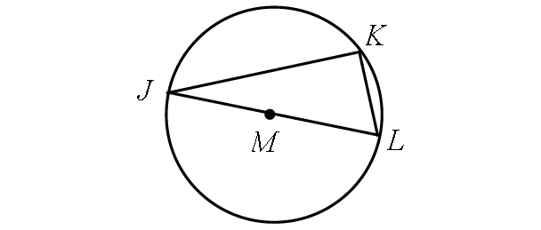 In the diagram shown above, the inscribed angle m∠JKL intercepts the diameter JL.