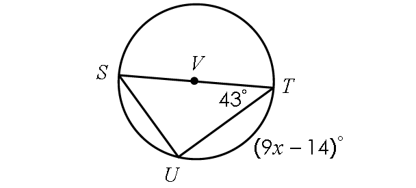 In the diagram shown above, the inscribed angle m∠SUT intercepts the diameter ST.