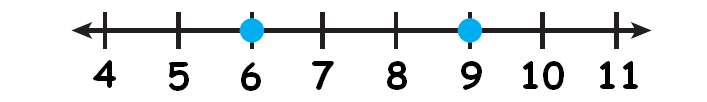 Let us locate the two whole numbers 6 and 9 on a number line and mark them.