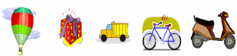 (A) Gift box (B) Scooter (C) Gas balloon