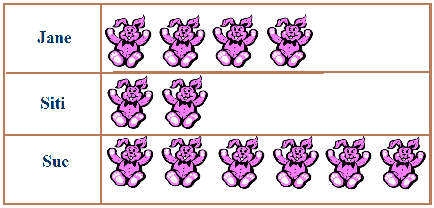 The picture graph shows the number of dolls these 5 girls have. Who has less dolls