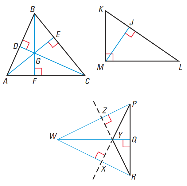 ΔYPR is an obtuse triangle. The three lines that contain the altitudes intersect at W, a point that is outside the triangle.