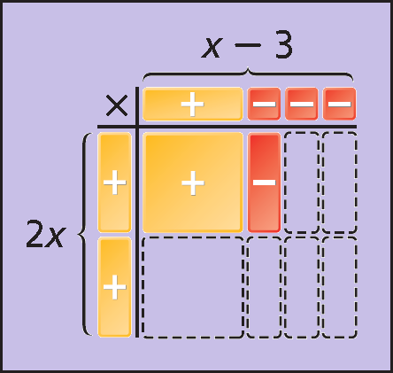 Use algebra tiles to find (2x)(2x - 3).