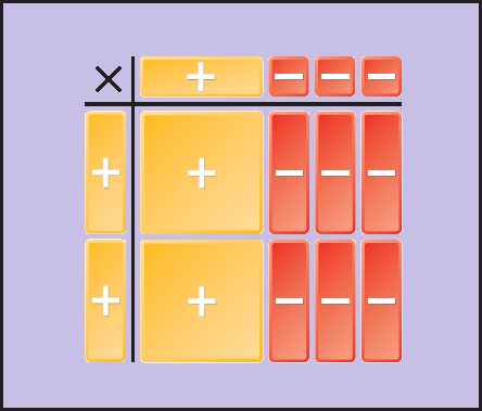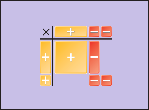 The product of values with different signs (different colors) is negative (red).