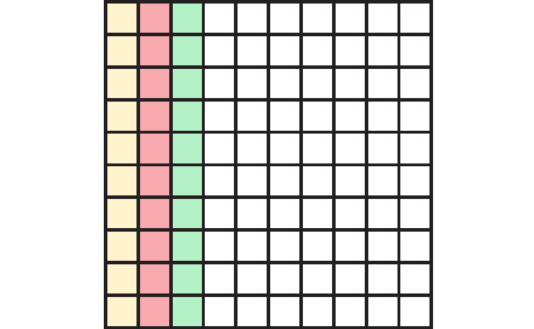 In the above grids, each part is shaded in different color and each part contains three columns.