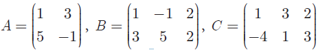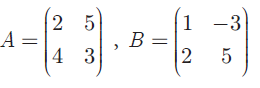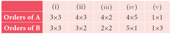 (3) A has ‘a’ rows and ‘a + 3 ’ columns. B has ‘b’ rows and ‘17–b’ columns, and if both products AB and BA exist, find a, b? Solution