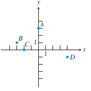 A (0, 3), B (-3, 1), C (-2, 0) and D(4, -1).