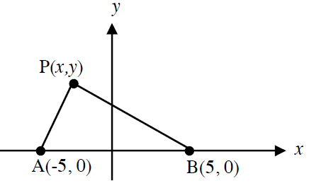 Points A and B are 10 km apart and it is determined from the sound of an explosion heard at those points at different times that the location of the explosion is 6 km closer to A than B . Show that the location of the explosion is restricted to a particular curve and find an equation of it.