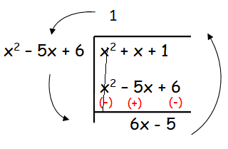 (x2 + x + 1)/(x2 - 5x + 6) = 1 + [(6x - 5)/(x2 - 5x + 6)]