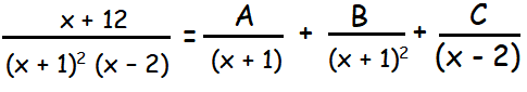 x + 12 = A(x2 - x - 2) + B(x - 2) + C(x2 + 2x + 1)