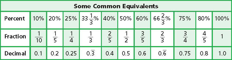 To find the fraction equivalent of a percent, write the percent as a ratio with a denominator of 100 and simplify.