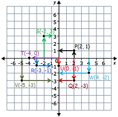 a. P(2, 1) b. Q(2, -3) c. R(-3, -1) d. S(-2, 3) |