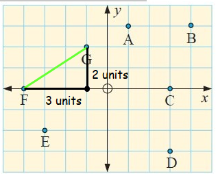 In the figure, draw a vertical segment of length 2 units from G and a horizontal segment of length 3 units from F.