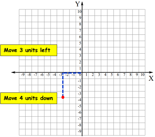 Write the ordered pair for a point that is 9 units to the left of the origin and lies on the x-axis.