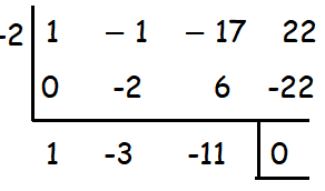 If x = −2 is one root of x3 − x2 − 17x = 22, then find the other roots of equation.