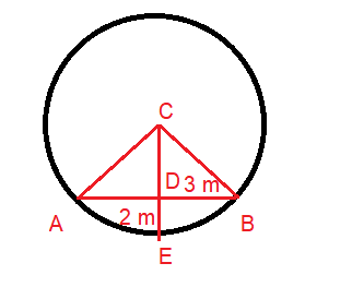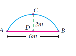 The arch of a bridge has dimensions as shown, where the arch measure 2 m at its highest point and its width is 6 m. What is the radius of the circle that contains the arch?
