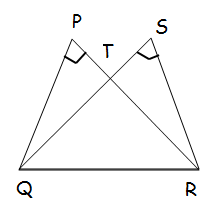 Two triangles QPR and QSR, right angled at P and S respectively are drawn on the same base QR and on the same side of QR. If PR and SQ intersect at T, prove that PT × TR = ST × TQ.