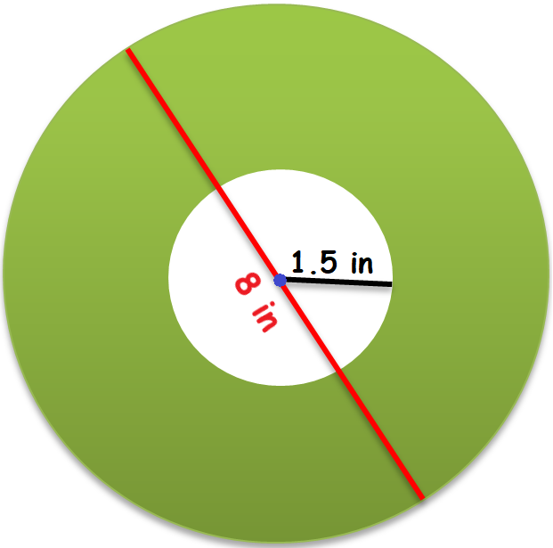 radius (r) = diameter/2 = 8/2 = 4 inches