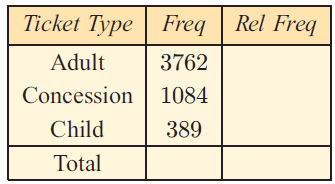 The tickets sold for a tennis match were recorded as people entered the stadium. The results are shown: