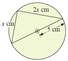 Radius of the circle = 5 cm, diameter = 10 cm.