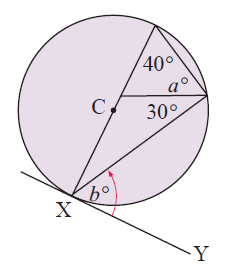 Inside the circle, we have a isosceles triangle. Angle in a semicircle is a right angle.