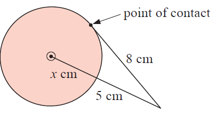 The tangent to a circle is perpendicular to the radius at the point of contact.
