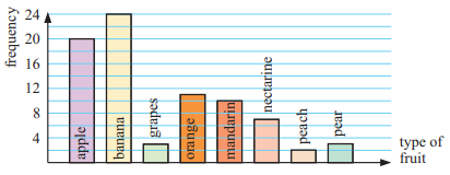 In an English middle school, 80 students were asked to name their favorite fruit. The following data was collected :