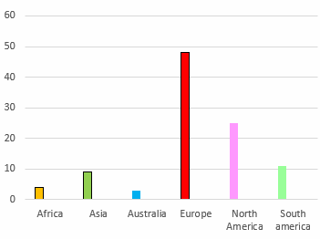 100 randomly selected students at an international school were asked to indicate the continent of origin of their father. The data collected has been organized into the following frequency table.