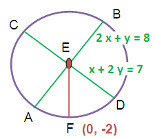 If x + 2y = 7 and 2x + y = 8 are the equations of the lines of two diameter of the circle, find the radius of the circle if the point (0, -2) lies on the circle.
