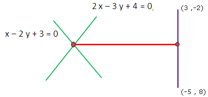 2x – 3y + 4 = 0, x – 2y + 3 = 0