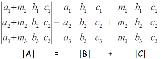If each element of a row (or column) of a determinant is expressed as sum of two or more terms then the whole determinant is expressed as sum of two or more determinants.